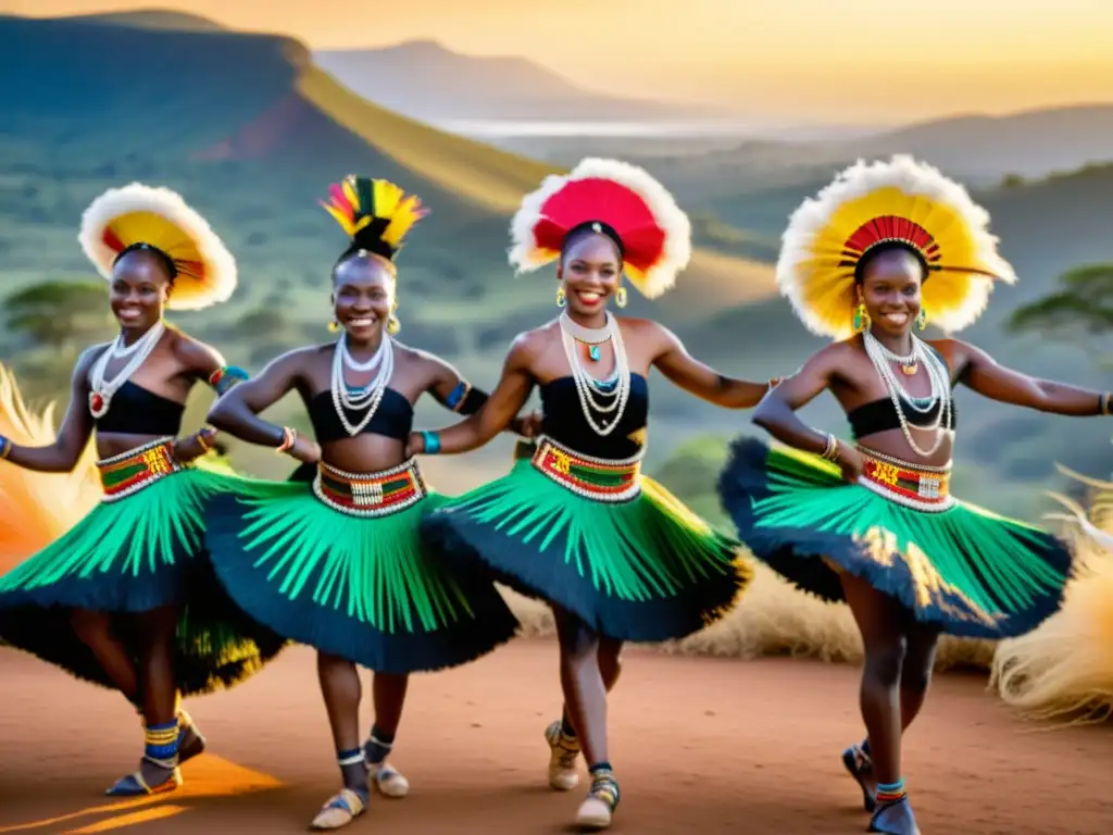 Grupo de bailarines malauíes danzando Malipenga en atuendos tradicionales vibrantes, expresando el significado cultural de la danza en Malawi